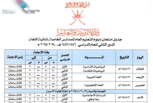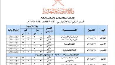 جدول الاختبارت 2025/2026 سلطنة عمان