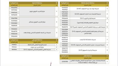 عناوین مراكز الدعم الفني بالمحافظات التعليمية