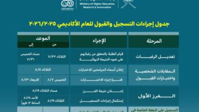 جدول التسجيل والقبول للعام الأكاديمي 2025 / 2026
