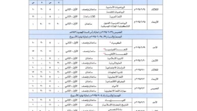 جدول الاختبارات الفصل الأول